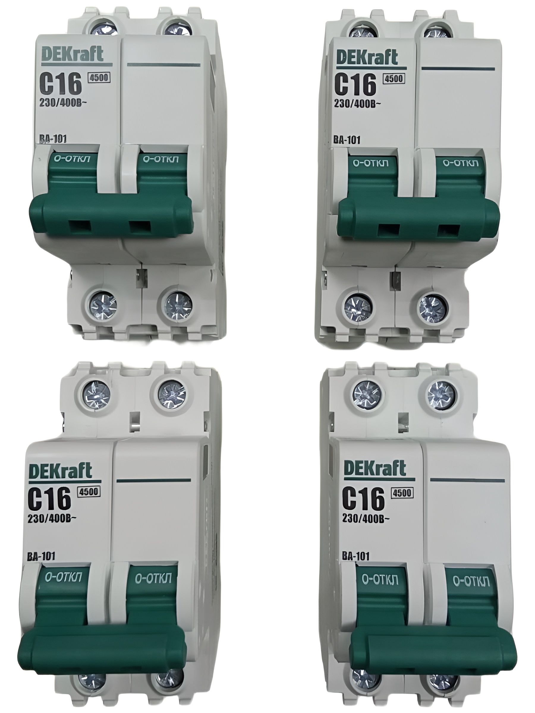 автоматический выключатель 2п 16А тип С 4,5кА серия ВА-101 DEKraft 4шт